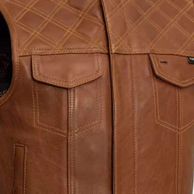 Durable Men Leather Vest Classic Waistcoat for Motorcycle Touring Rodeo Style Streetwear & Outdoor