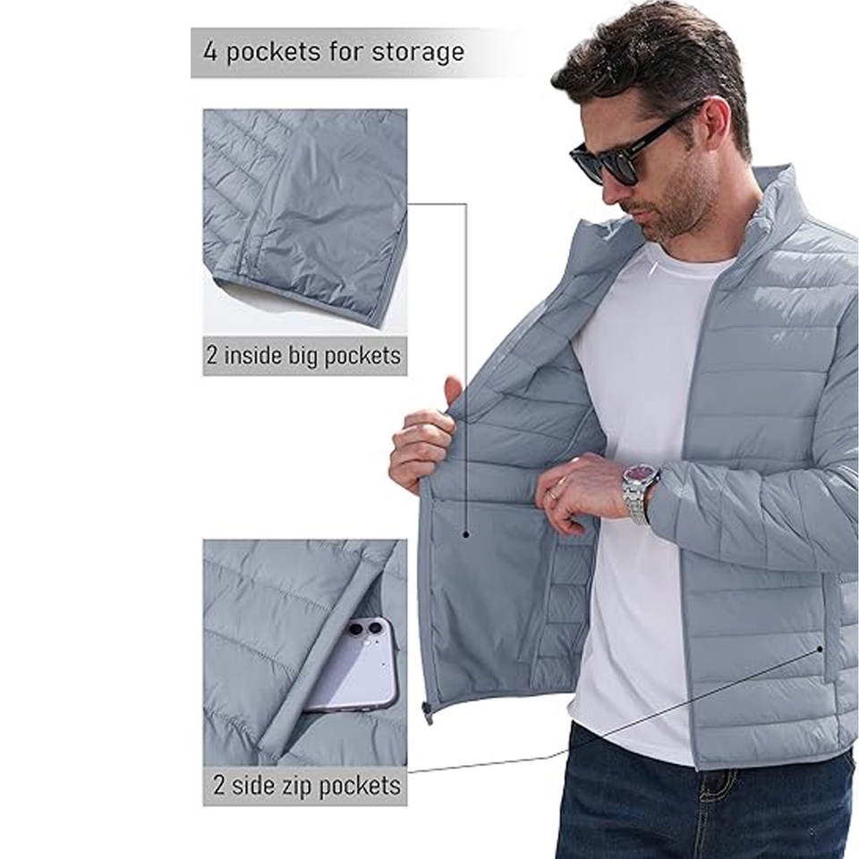 เสื้อแจ็คเก็ตพัฟเฟอร์สำหรับผู้ชายที่ทนทานสำหรับฤดูหนาว น้ำหนักเบา ระบายอากาศได้ดี ทำจากไนลอน พร้อมฉนวนกันลมและกันน้ำ ยืดหยุ่นได้