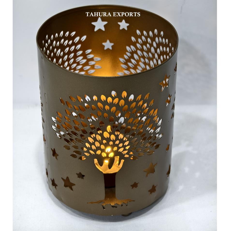 เชิงเทียนตาข่ายโลหะทนทานสำหรับเอฟเฟกต์แสงที่หรูหราในการตกแต่งภายในบ้านร้านอาหารสปาหรือการตั้งค่าสวนกลางแจ้ง