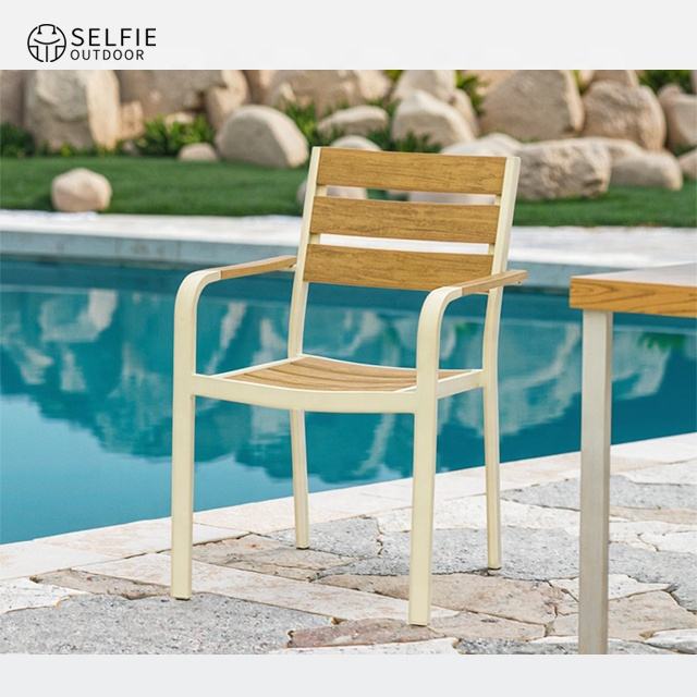 เก้าอี้และม้านั่งกลางแจ้งแบบวางซ้อนกันได้ทำจากอลูมิเนียมทันสมัยทนทานสำหรับลานบ้านโรงพยาบาลห้องครัววิลล่าการประชุมเชิงปฏิบัติการสวนห้องนอนโรงเรียน
