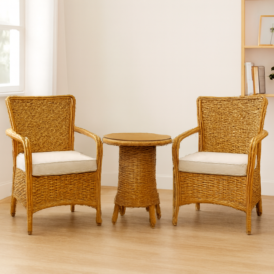 ชุดเฟอร์นิเจอร์หวายธรรมชาติแบบสแกนดิเนเวียเป็นมิตรกับสิ่งแวดล้อมชุดเฟอร์นิเจอร์ยืดได้ทำด้วยมือสำหรับใช้ในร่ม/กลางแจ้งห้องนั่งเล่นสำหรับบ้าน