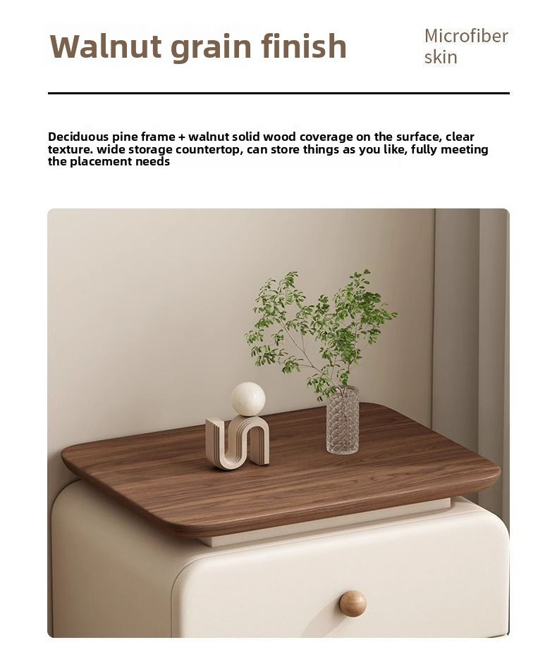 โต๊ะข้างเตียงที่ทนทานแบบไม่ต้องติดตั้งตู้ขนาดเล็กสไตล์ครีมเรียบง่ายทันสมัยสำหรับบ้านห้องนอนที่เก็บของทำจากหนัง