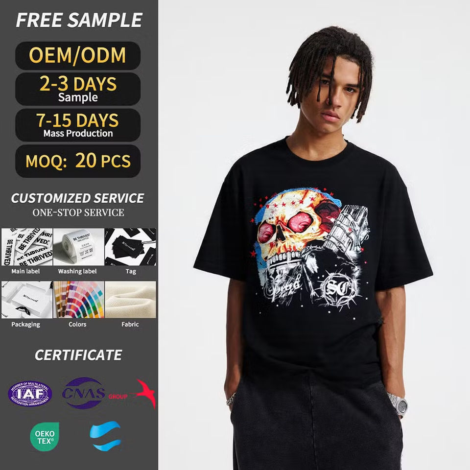 เสื้อยืดผู้ชายผ้าฝ้ายย้อมสีแบบแอซิดวอช พิมพ์ลายตามสั่ง OEM ทนทาน เหมาะสำหรับการสังสรรค์กับเพื่อนและสวมใส่ลำลอง