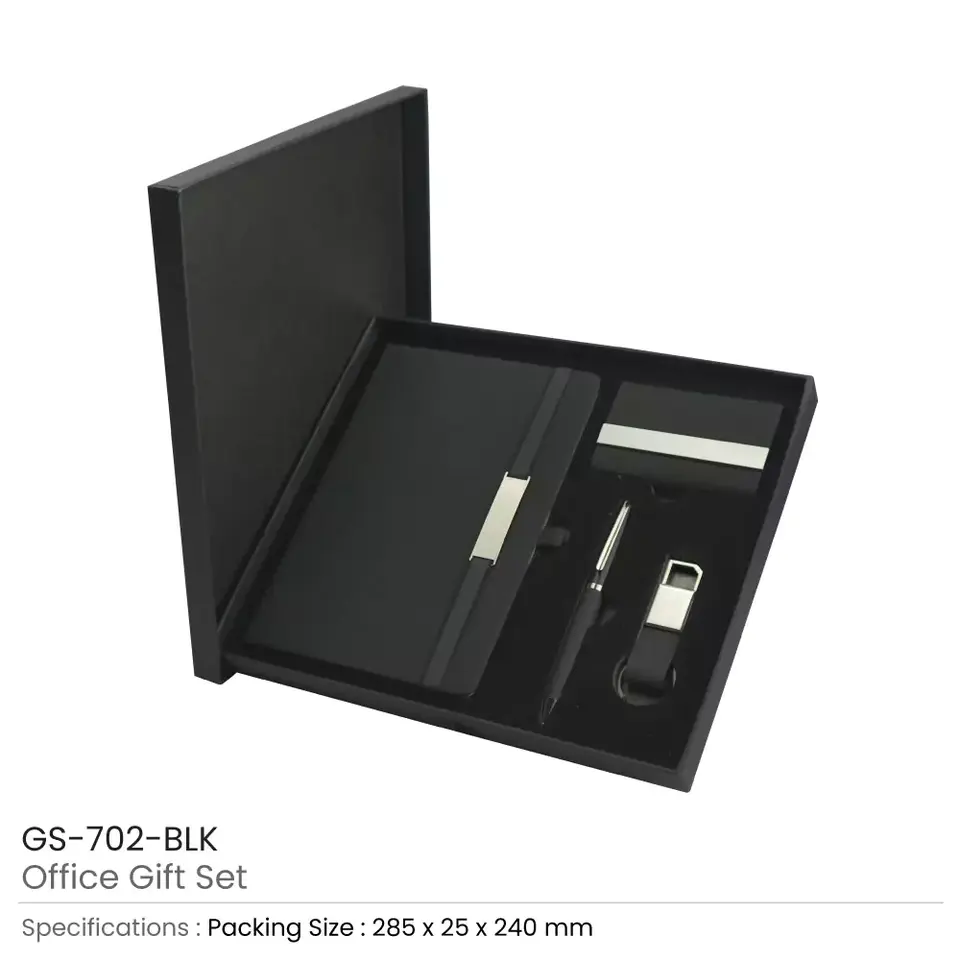 ชุดของขวัญสำนักงานที่ทนทาน พร้อมสมุดบันทึก ปากกา ที่ใส่บัตร และพวงกุญแจ