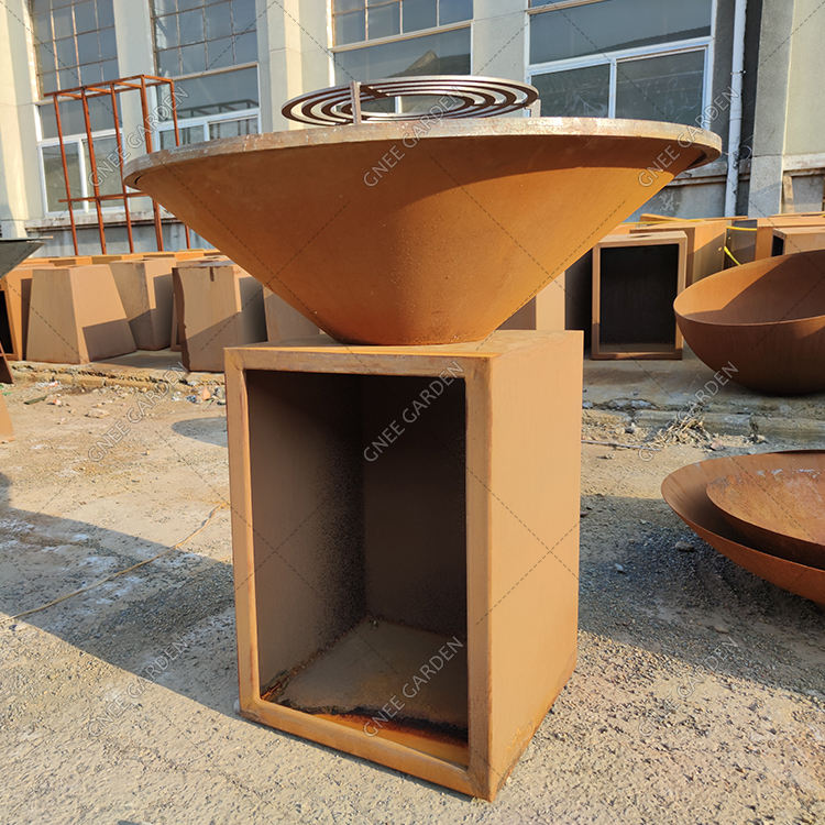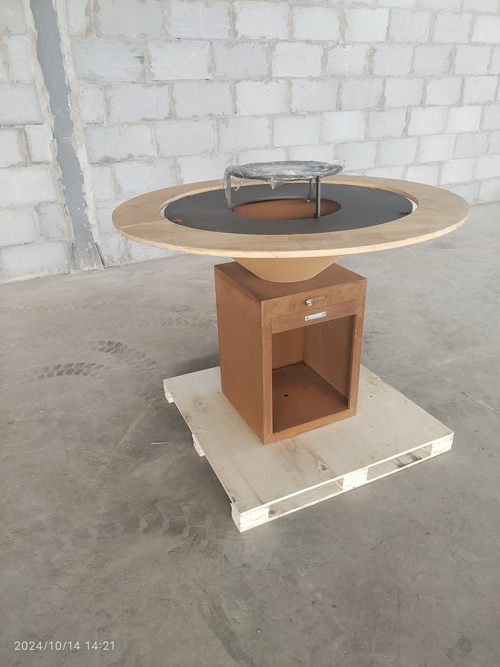 เตาย่างบาร์บีคิวหลุมไฟถ่านกลางแจ้งทนทานพร้อมระบบจุดระเบิดอัตโนมัติเหล็กกล้าคอร์เทนทนความร้อนสูง