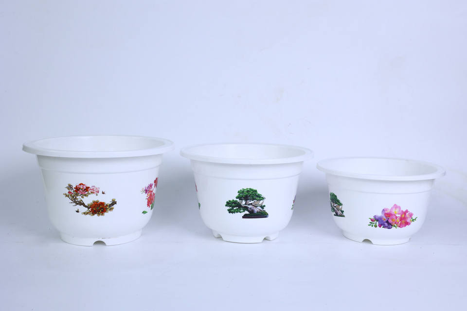 กระถางดอกไม้พลาสติก PP ทนทาน สีขาว ทรงกลม สำหรับปลูกบอนไซ น้ำหนักเบา แข็งแรง ทนทาน ผลิตจากโรงงาน ขนาด A330
