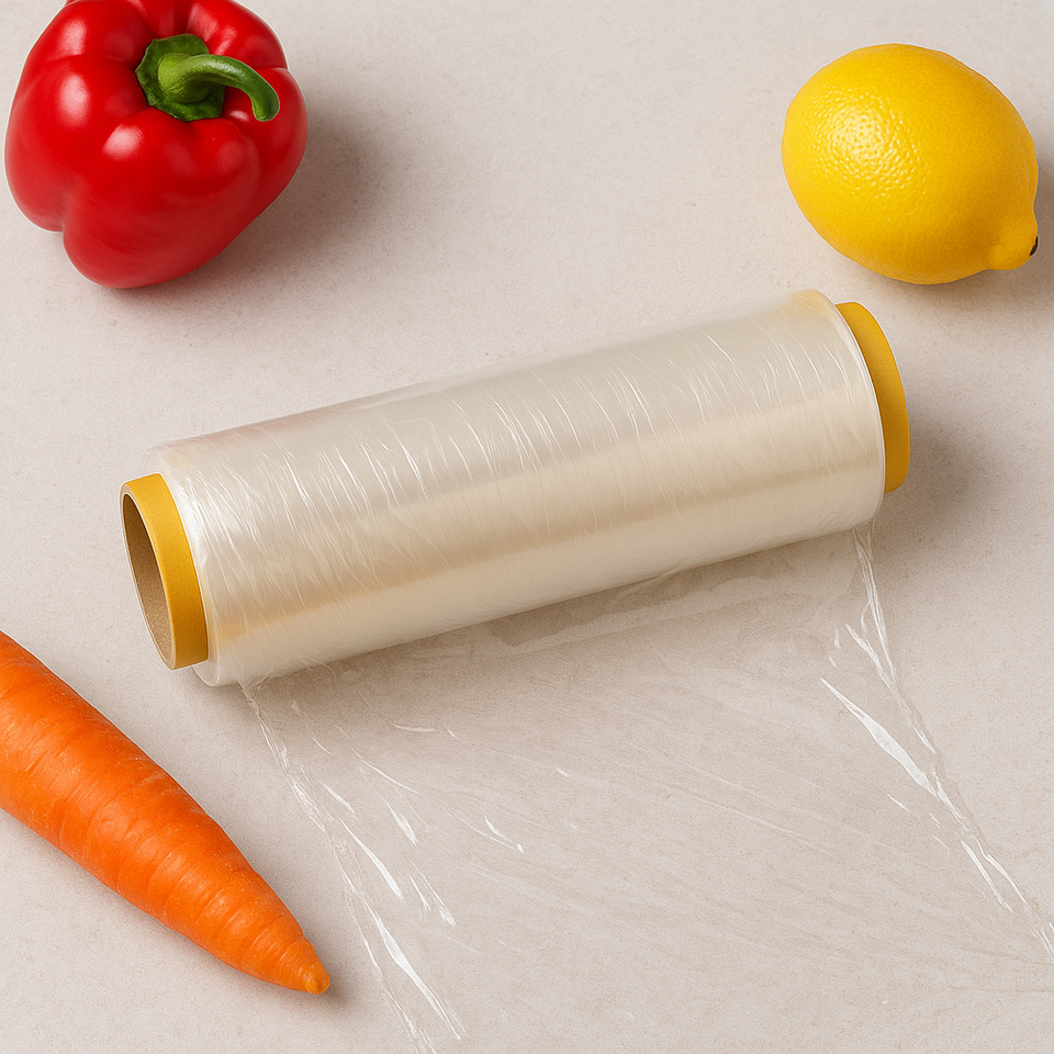 ฟิล์มพีวีซีห่ออาหารที่มีความชัดเจนสูงและแข็งแรงยืดได้ห่อพลาสติกครัวแบบกำหนดเองสำหรับเก็บอาหารทุกวัน