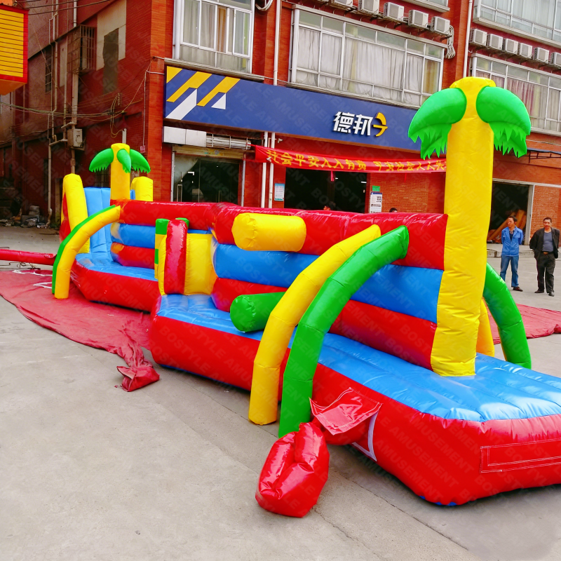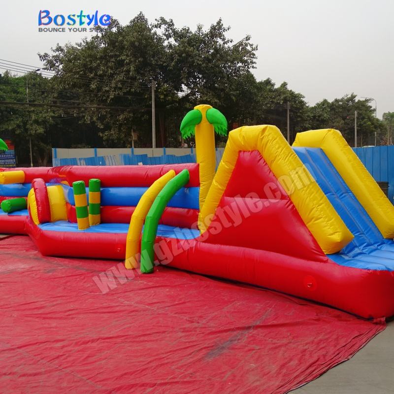 หอปีนป่ายเป่าลม PVC ทนทานพร้อมสไลเดอร์, แทรมโพลีนลอยน้ำสำหรับสวนน้ำ