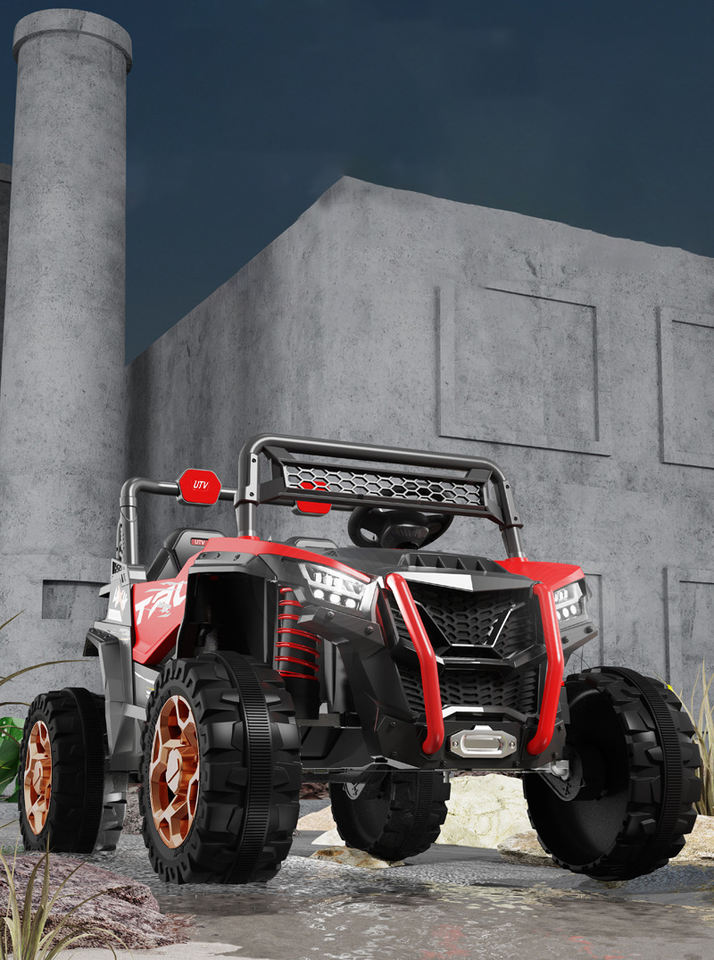 รถยนต์ไฟฟ้าสำหรับเด็กทำจากพลาสติกทนทานพร้อมรีโมทคอนโทรลบลูทูธสำหรับการผจญภัยในละแวกใกล้เคียง