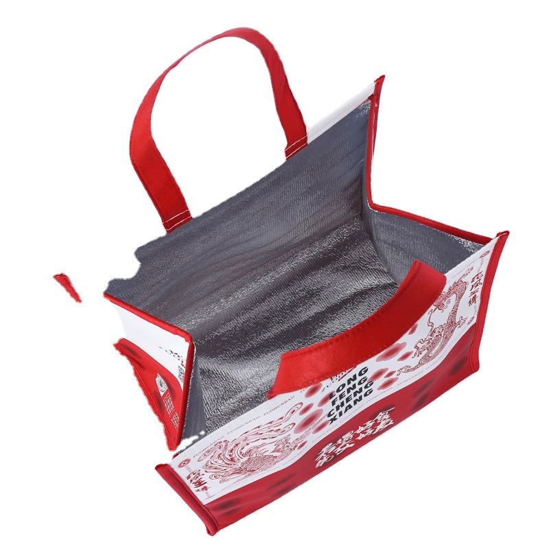 กระเป๋าเครื่องสำอางเก็บความเย็นโพลีเอสเตอร์ทนทานทันสมัยนำกลับมาใช้ใหม่ได้อลูมิเนียมฟอยล์ฟอยล์ผลไม้สดและน้ำแข็ง