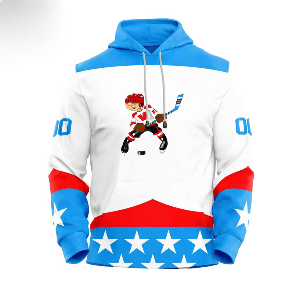 เสื้อทีมฮ็อกกี้น้ำแข็งโพลีเอสเตอร์ทนทานชุดกีฬากลางแจ้งดีไซน์ฮ็อกกี้น้ำแข็งปักลาย