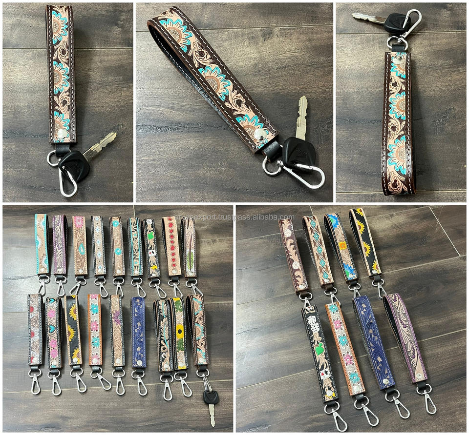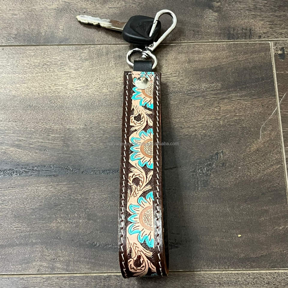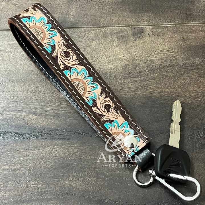 Product Name:Hand Tooled Genuine Leather Wristlet Keychain