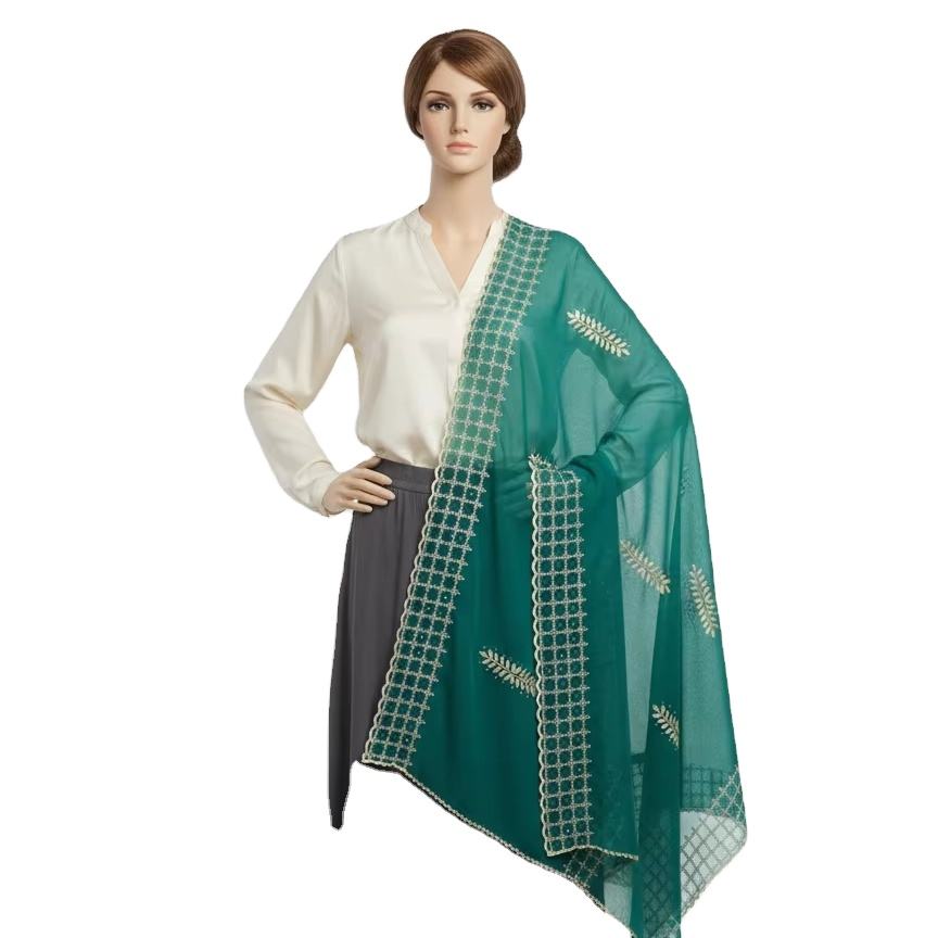 ผ้าคลุมไหล่ชีฟองแอฟริกันสำหรับผู้หญิง คุณภาพพรีเมียม ทนทาน ลายดอกไม้ปักประดับคริสตัล ระบายอากาศได้ดี นุ่มสบาย เหมาะสำหรับสวมใส่ทุกวัน