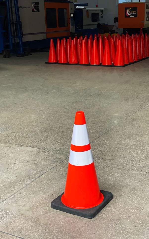 กรวยถนนพีวีซีสะท้อนแสง300มม.-900มม. เตือนการจราจรฉุกเฉินทนทานวัสดุยางและพลาสติก