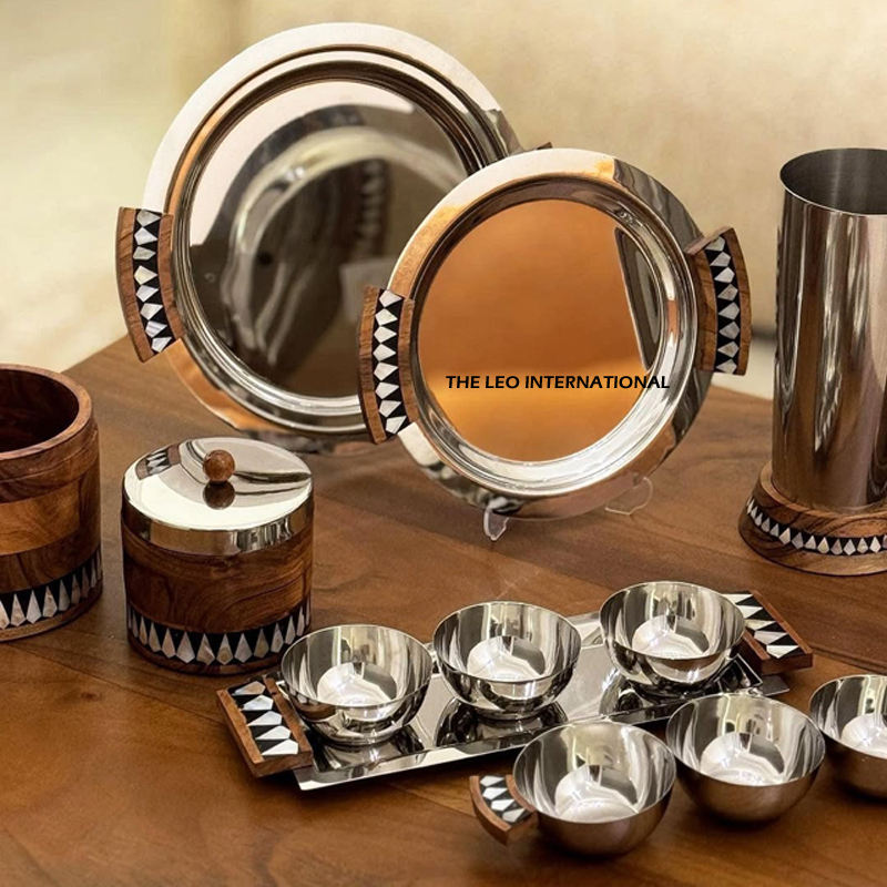 ชามพร้อมถาดชุดชามดีไซน์หรูหรา6ชิ้นสำหรับเครื่องเงินถ้วยญี่ปุ่นขัดเงาช็อคโกแลต