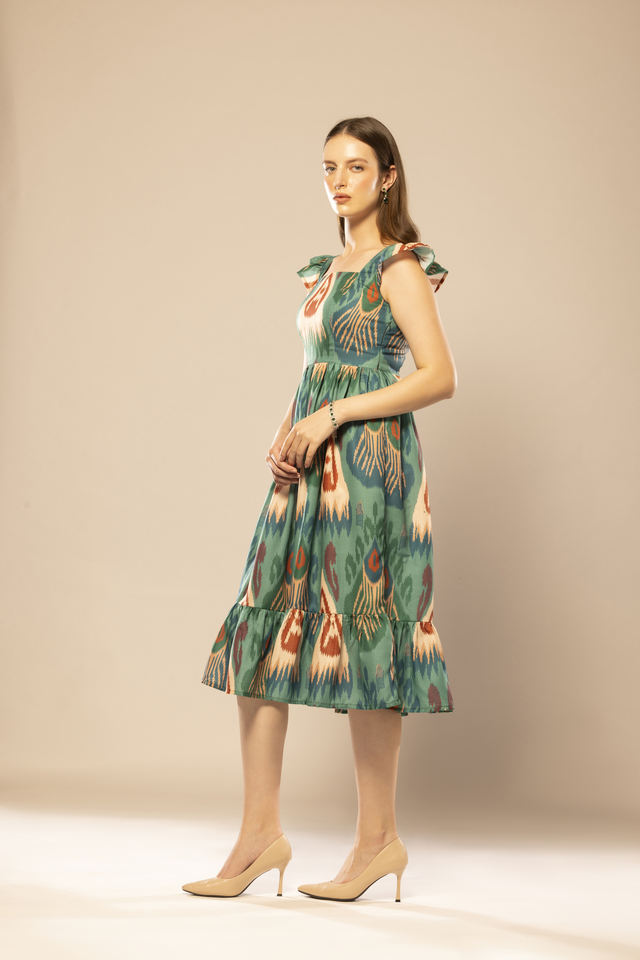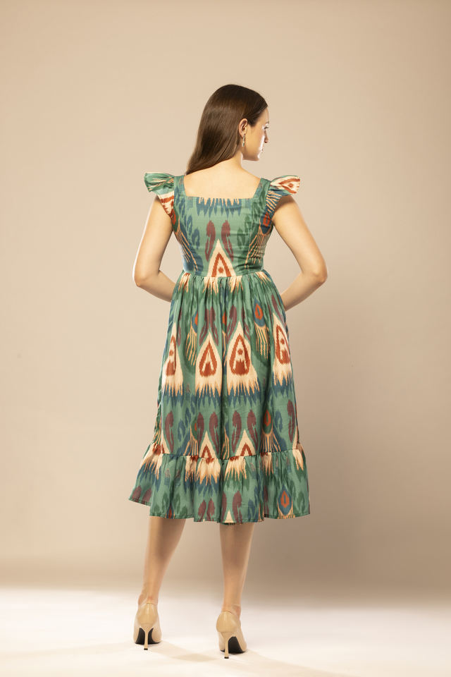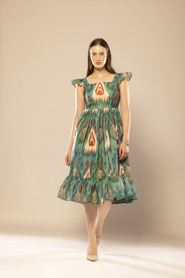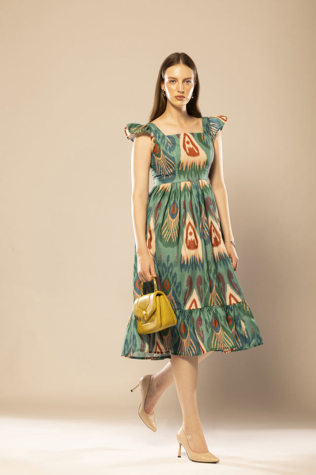 ชุดเดรสทรงเข้ารูปพิมพ์ลายกราฟิกสีเขียวคุณภาพทนทาน ดีไซน์โดดเด่นสำหรับผู้หญิง เหมาะสำหรับงานแต่งงาน งานปาร์ตี้ และสวมใส่ในชีวิตประจำวัน