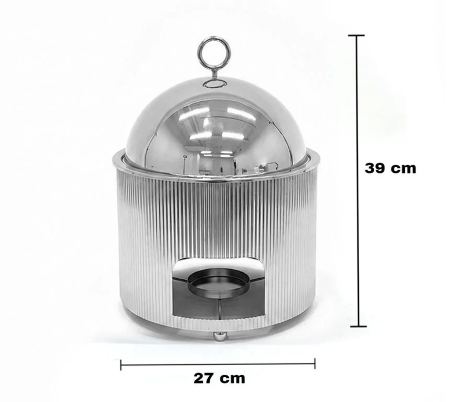 หม้ออุ่นอาหารทรงทันสมัย คุณภาพทนทาน เป็นมิตรกับสิ่งแวดล้อม ฝาปิดสแตนเลสขัดเงาสีเงิน เหมาะสำหรับงานแต่งงานและบุฟเฟ่ต์