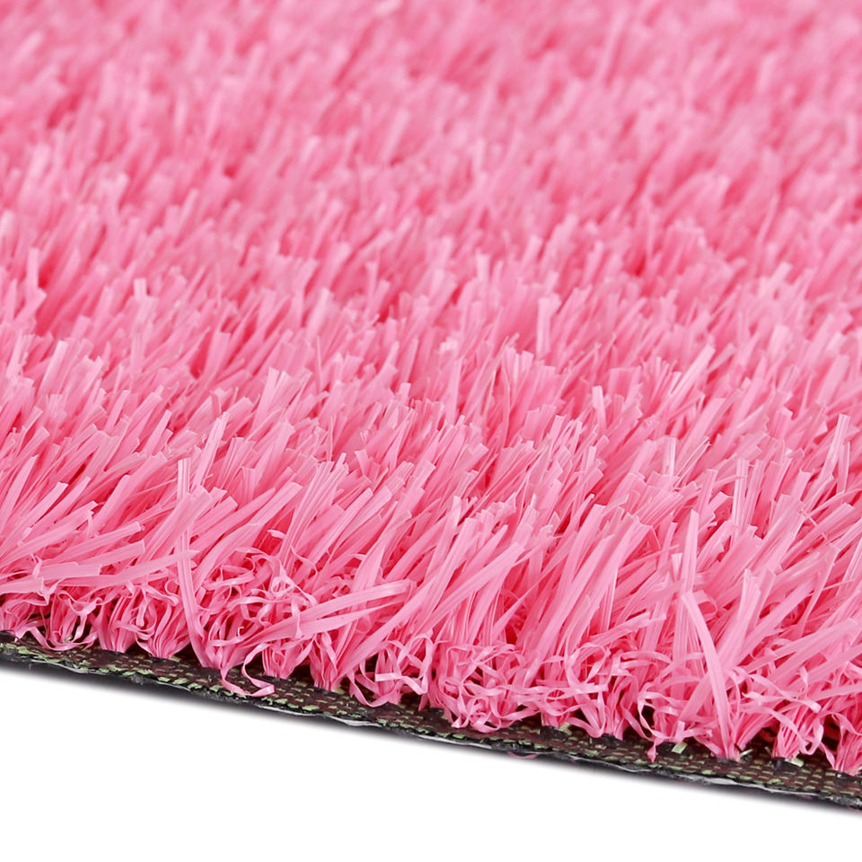 พรมหญ้าเทียมสีชมพูสำหรับสนามเด็กเล่นกลางแจ้งและโรงเรียนอนุบาลปลอดภัยทนทานต่อสีรุ้ง