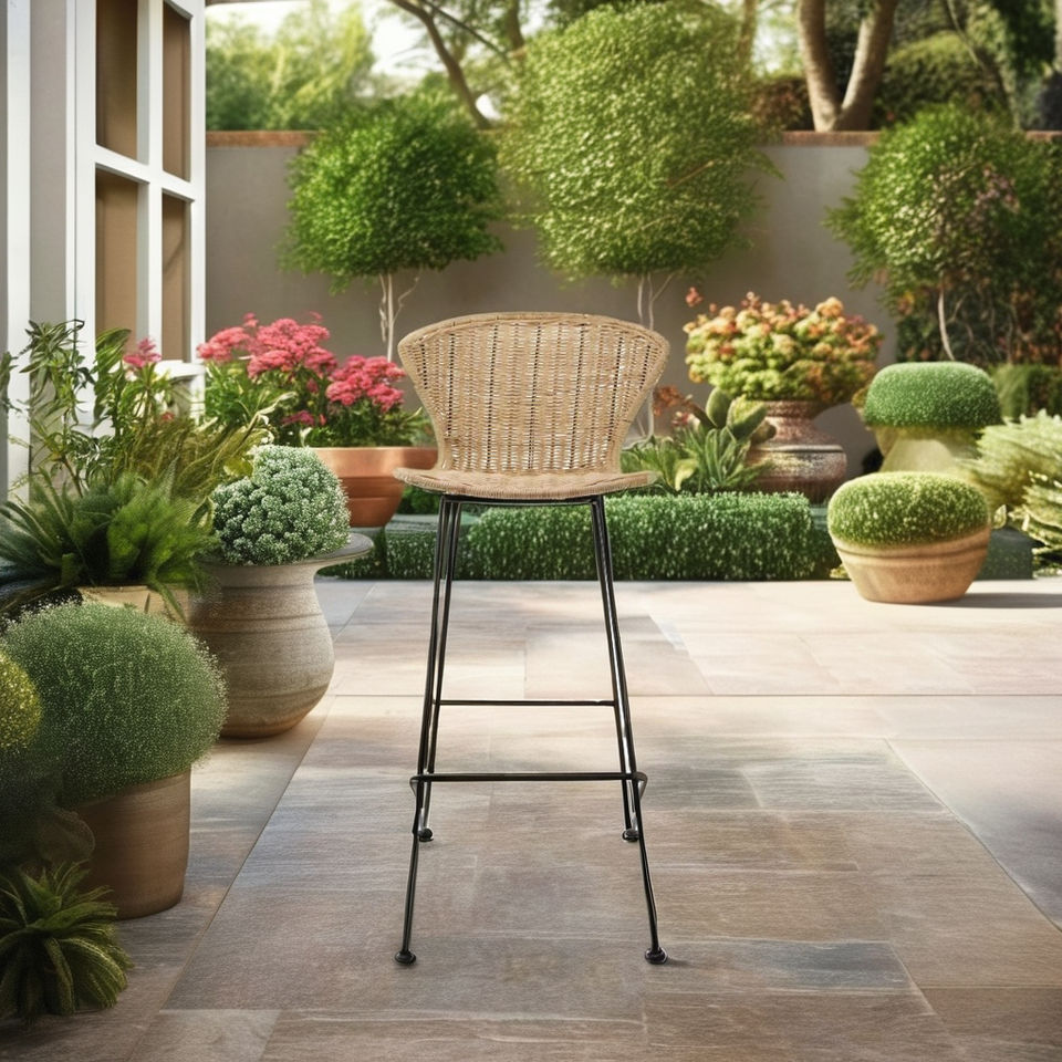เก้าอี้บาร์หวายทนทานสำหรับในร่มกลางแจ้งสะดวกสบายสำหรับโรงแรมห้องนั่งเล่นสวนสาธารณะวิลล่าห้องนอนรับประทานอาหารเฟอร์นิเจอร์กลางแจ้ง