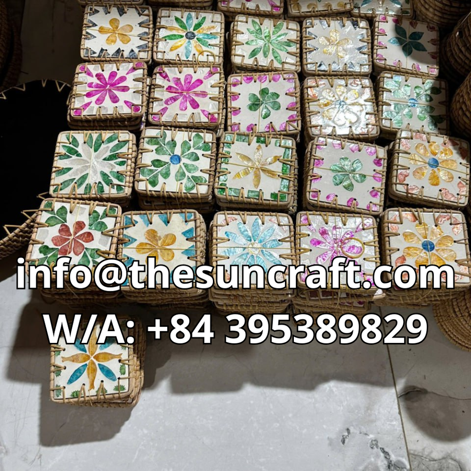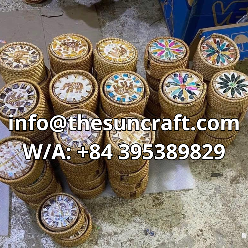 แผ่นรองแก้วขอบหวายทนทาน กันลื่น ทนความร้อน แผ่นรองมุกหนาพิเศษ สำหรับเครื่องดื่มร้อน