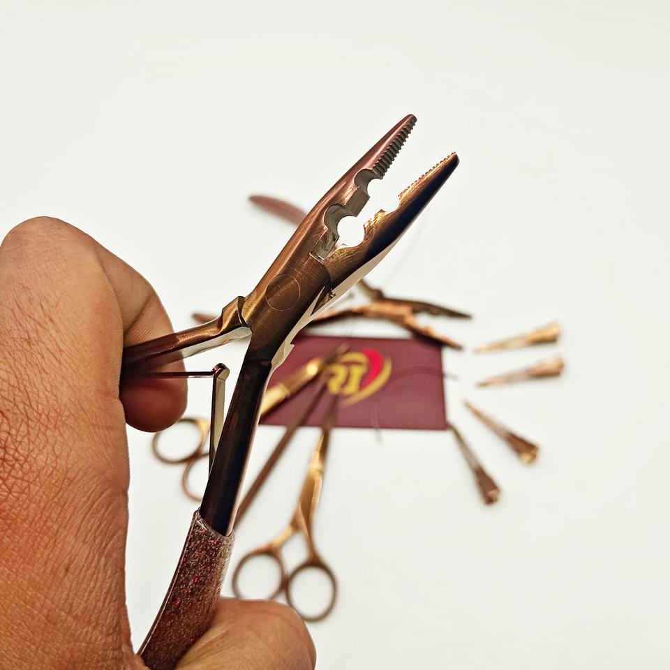 ชุดคีมต่อผมสีโรสโกลด์ ทนทาน ทำจากสแตนเลส ใช้สำหรับปิดห่วงไมโครริง สำหรับร้านทำผม ขายส่ง OEM REVAMP