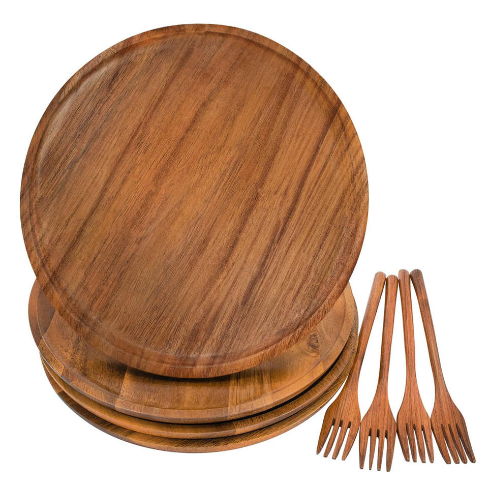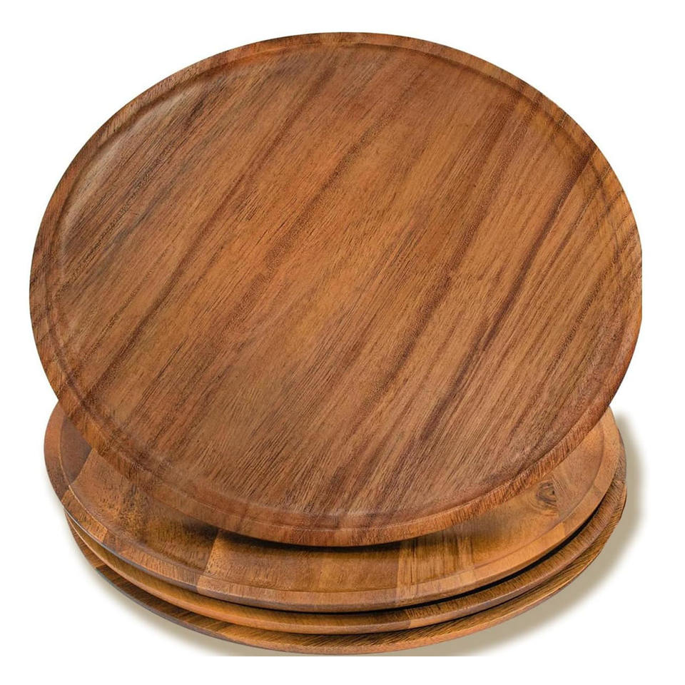 ชื่อผลิตภัณฑ์:จานไม้อะคาเซียสำหรับเสิร์ฟทรงกลม L ชุด4ชิ้น
