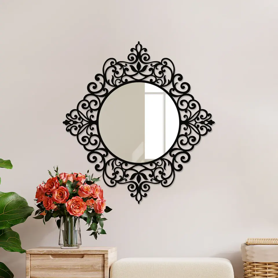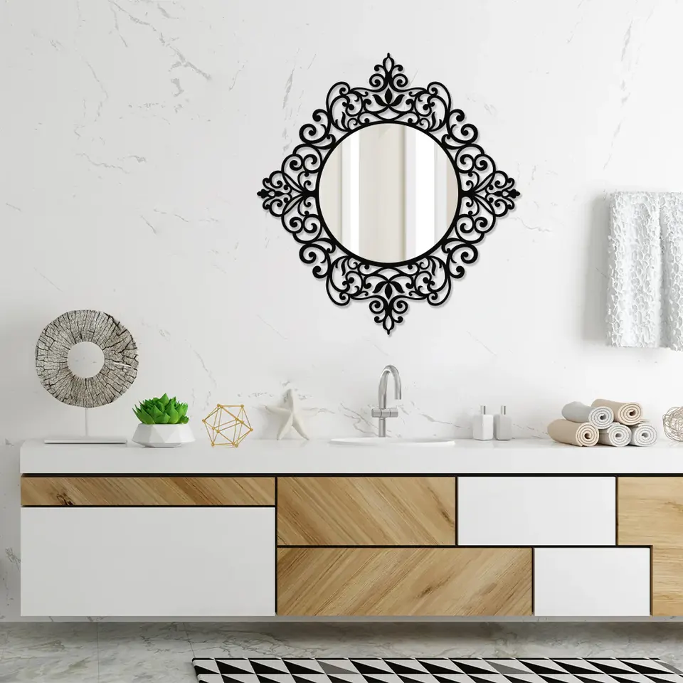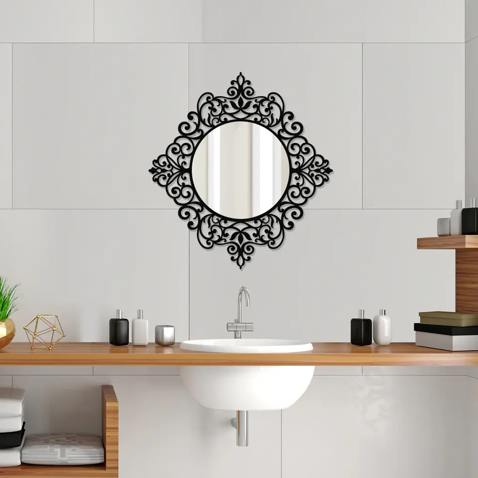 กระจกติดผนังโลหะทรงกลมทนทานพร้อมดีไซน์แบบศิลปะและกรอบโลหะกันน้ำสำหรับบ้านสมัยใหม่มีจำหน่ายในราคาโรงงาน