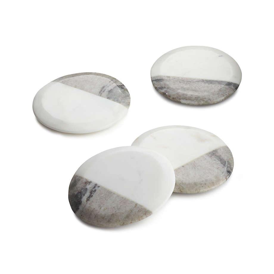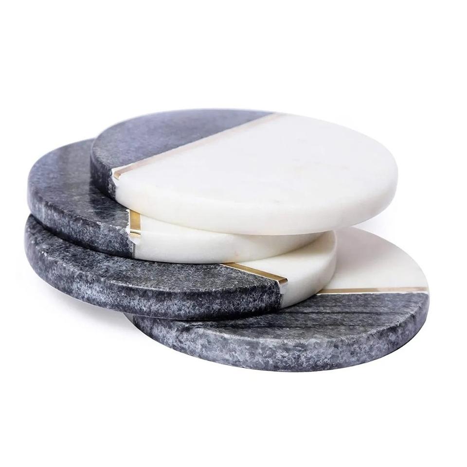 ที่รองแก้วหินอ่อนสีขาวทรงกลมทนทานพร้อมที่วางไม้แผ่นหินสำหรับตกแต่งห้องครัว