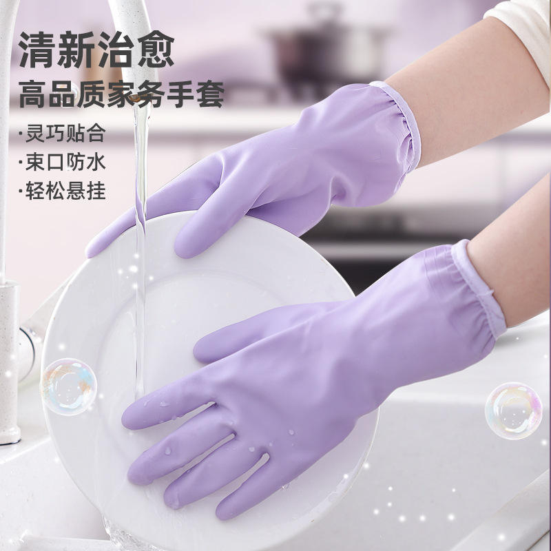 ถุงมือยางล้างจานทนทาน กันน้ำ สีพื้น ยาว 32 ซม. สำหรับทำความสะอาดห้องครัวและใช้ในครัวเรือน