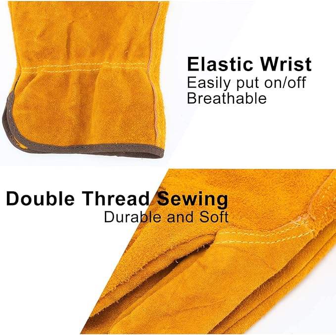ถุงมือนิรภัยที่ทนทานสำหรับงานเชื่อมด้วยหนังกันไฟและป้องกันข้อมือยาวเหมาะสำหรับงานโรงงานและทีมงาน