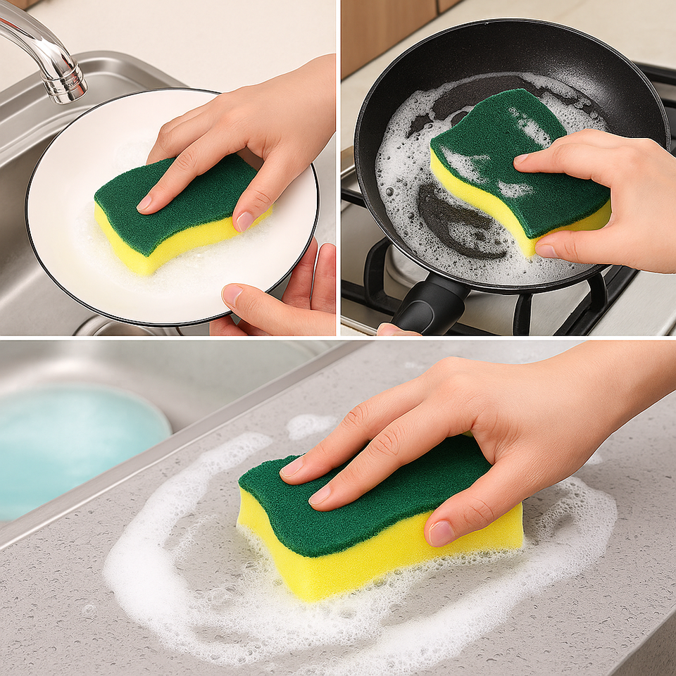 ฟองน้ำขัดทนทานไม่เป็นรอยขีดข่วนแผ่นทำความสะอาดอเนกประสงค์ฟองน้ำขัดสำหรับห้องครัวหม้อกระทะทำความสะอาดจาน