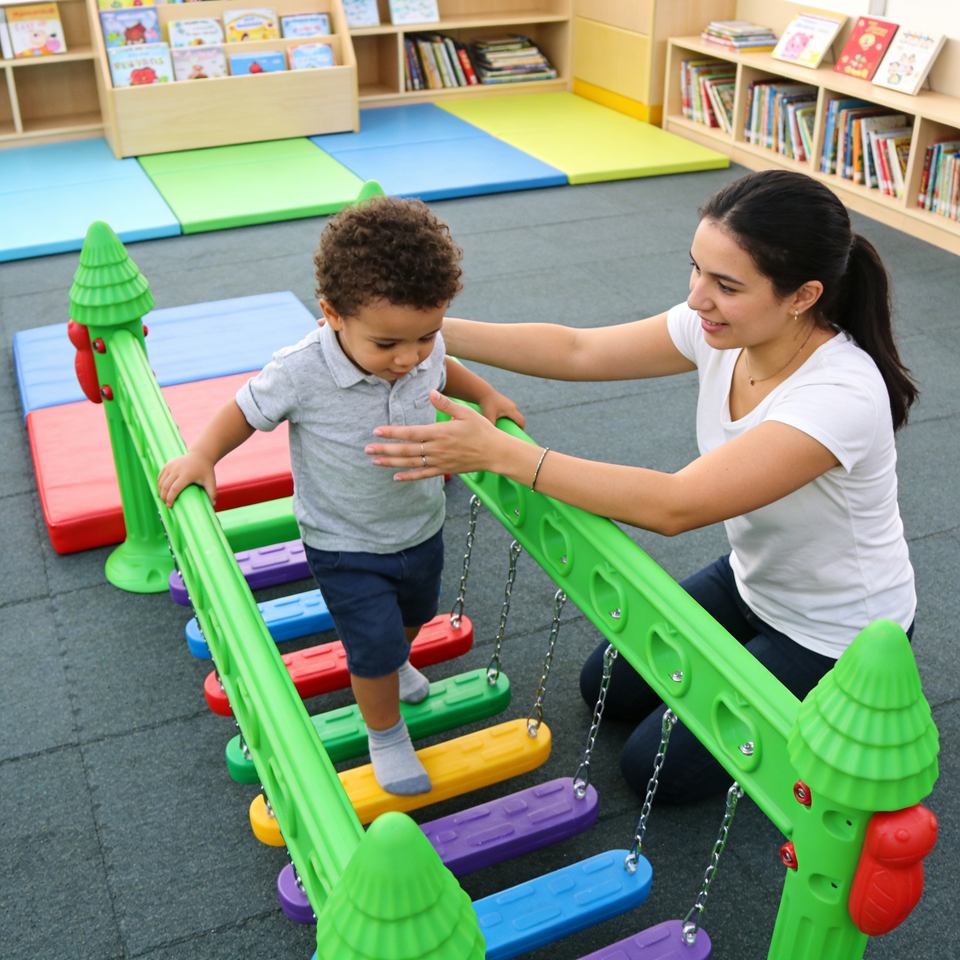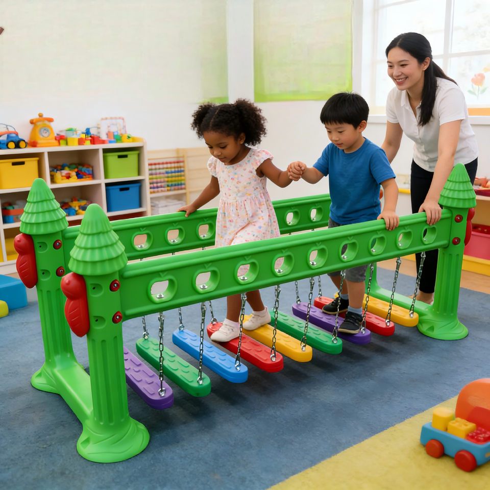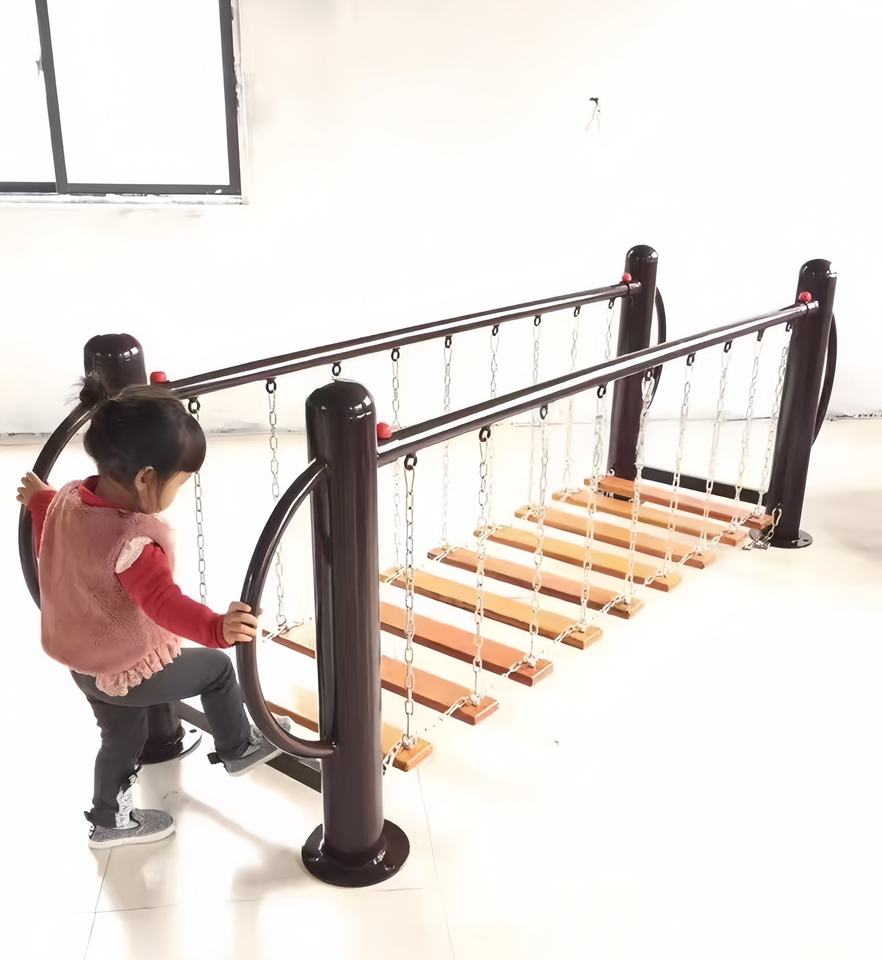 สะพานสมดุลเสริมพัฒนาการเด็ก ทนทาน พร้อมสายยางยืดสำหรับสนามเด็กเล่นในร่ม
