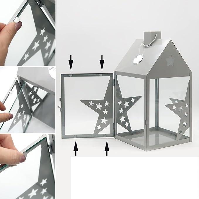ชุดโคมไฟโลหะ2ชิ้นพร้อมแผงกระจกโคมไฟดาวโคมไฟคริสต์มาสสำหรับสวนหรือระเบียงของขวัญจากโรงงานโดยตรง