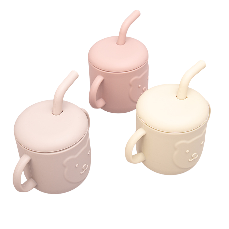 ถ้วยซิลิโคนหัดดื่มสำหรับทารกพร้อมหลอดดีไซน์การ์ตูนแพนด้าป้องกันการตกหล่นเพื่อการเรียนรู้ของเด็กทารกสำหรับบ้าน