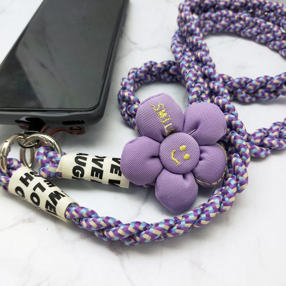 สายคล้องโทรศัพท์แบบถักจากไนลอนและโลหะ ทนทาน นุ่มนวล พร้อมดีไซน์ดอกไม้ห้ากลีบ น่ารัก มาพร้อมตะขอโลหะเพื่อการยึดเกาะที่มั่นคง ใช้งานได้ทุกวัน