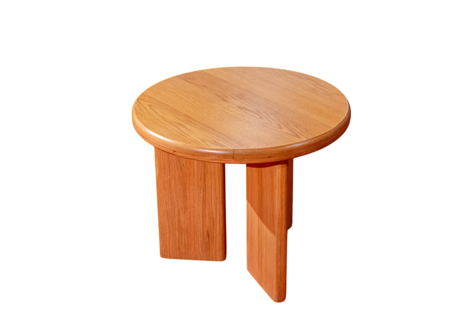 โต๊ะกาแฟ/โต๊ะกลางทรงกลมไม้โอ๊คแข็งแรงทนทาน สไตล์มินิมอล สำหรับห้องนั่งเล่นหรือร้านกาแฟ สามารถเคลื่อนย้ายได้ด้วยขาสามขา