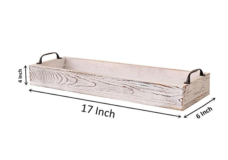 ถาดไม้มะม่วงพร้อมที่จับโลหะทนทานถาดเสิร์ฟทรงสี่เหลี่ยมผืนผ้า