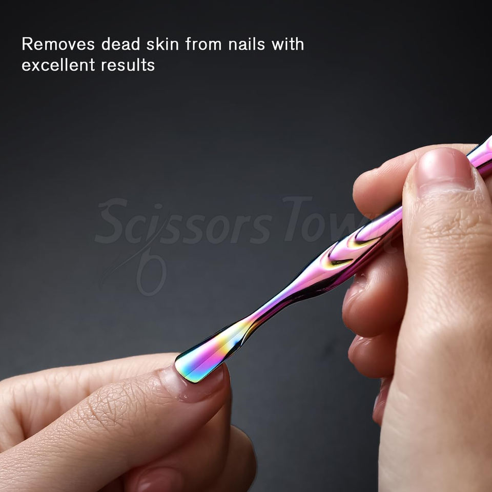 ที่ดันเล็บหนังกำพร้าสแตนเลสทนทานเครื่องมือสองด้านสำหรับทำเล็บเท้าและทำความสะอาดเล็บมืออาชีพ