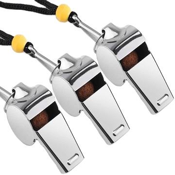 นกหวีดสแตนเลสทนทานพร้อมสายคล้องอุปกรณ์สำหรับผู้ตัดสินกีฬากลางแจ้งที่เสียงดังทำจากเหล็กทองเหลืองความจำเป็นในการอยู่รอด
