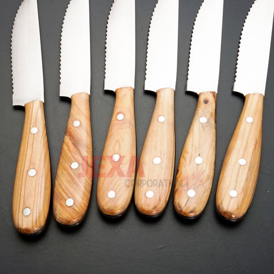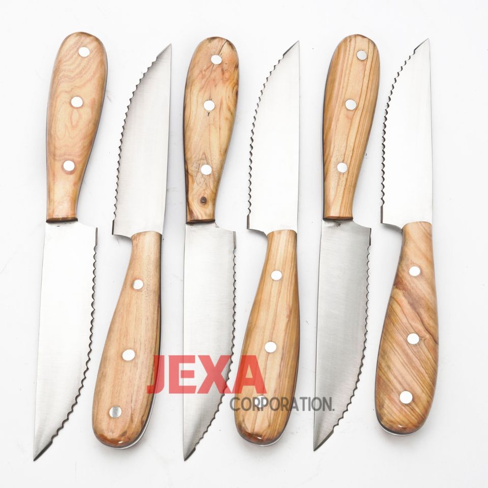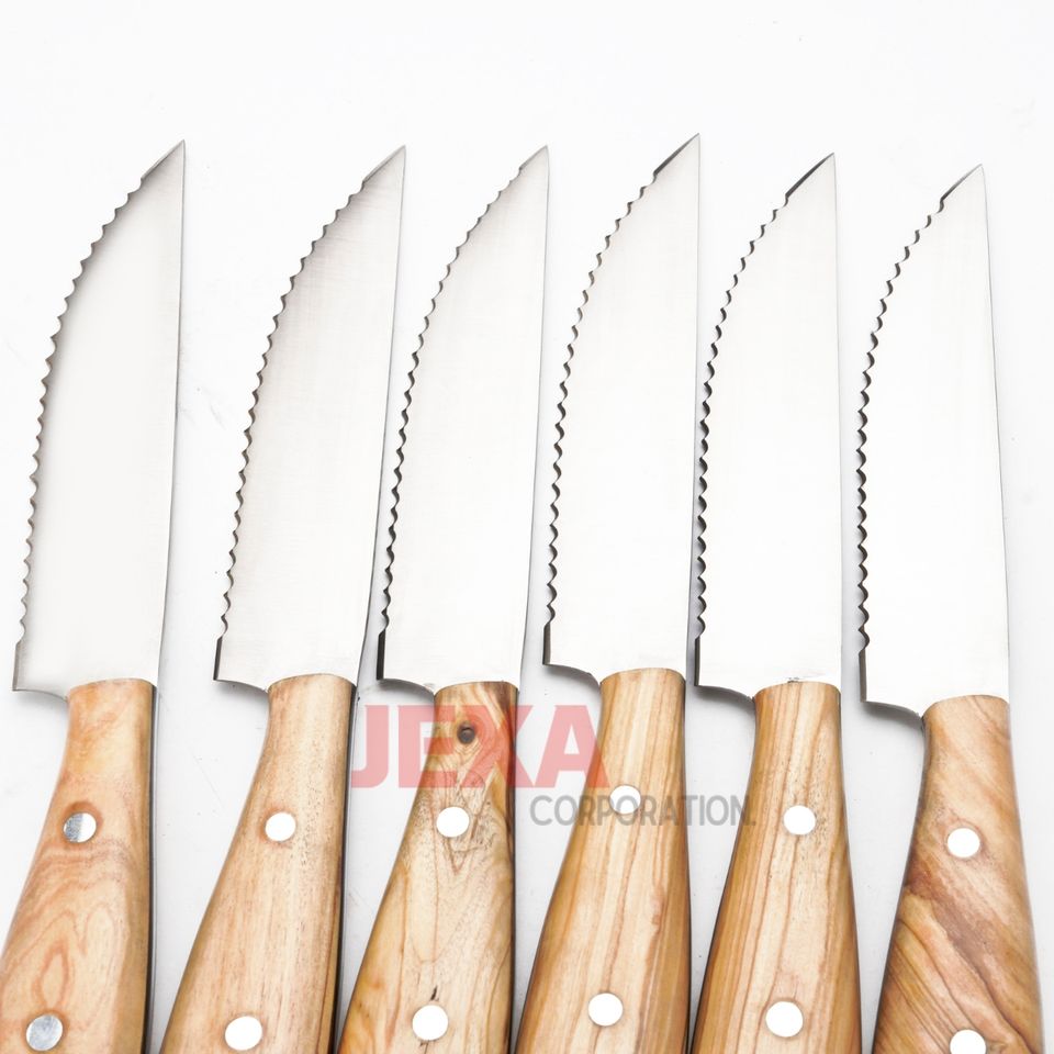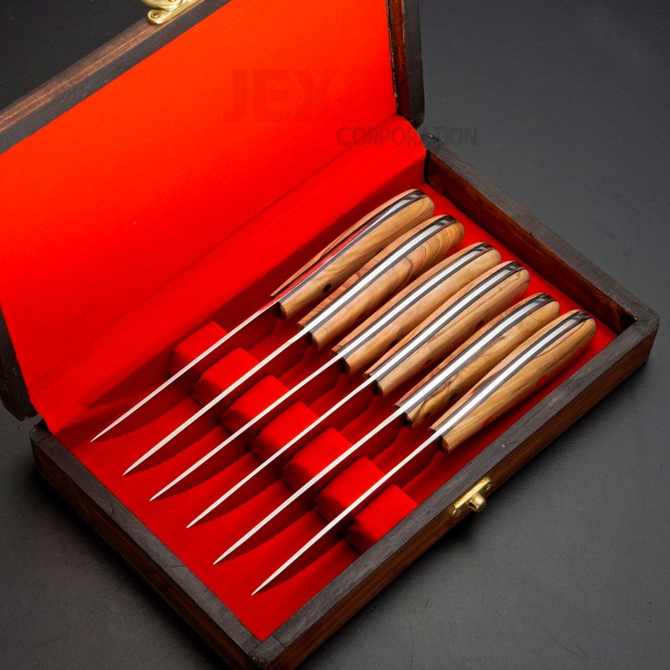 ชุดมีดสเต็กทนทานพร้อมใบมีดเหล็กญี่ปุ่น J2ผิวด้านปรับทิศทางได้กล่องไม้บรรจุภัณฑ์ของขวัญ