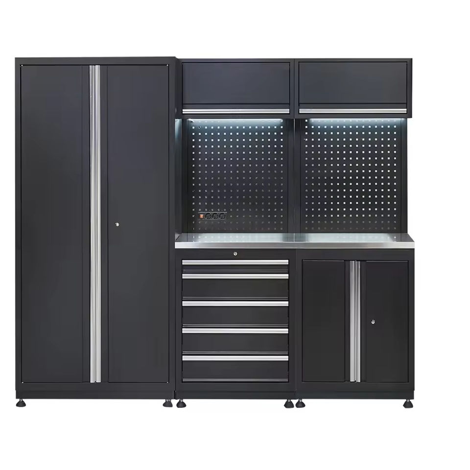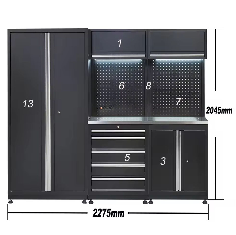 ตู้เหล็กแข็งแรงทนทานพร้อมตู้ติดผนัง 2 ตู้ สำหรับใช้งานกลางแจ้งและโรงเรียน สถานีจัดเก็บเครื่องมือซ่อมรถยนต์ โต๊ะทำงานดีไซน์ทันสมัย