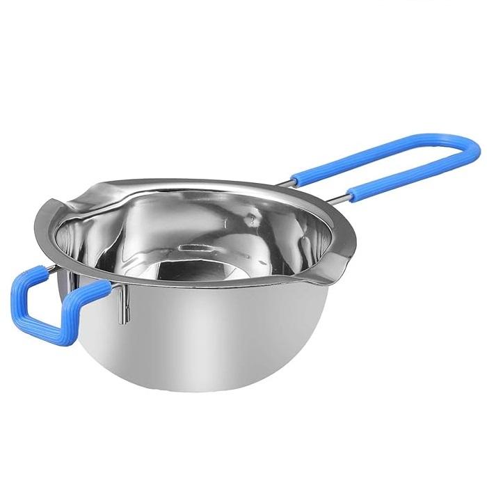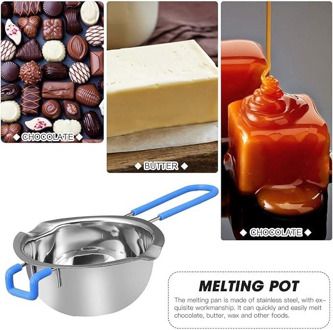 หม้อต้มสองชั้นทำจากเหล็กช็อคโกแลตที่ทนทานพร้อมด้ามซิลิโคนสำหรับละลายลูกกวาดและเนยชีสช็อคโกแลตเพิ่มเติม
