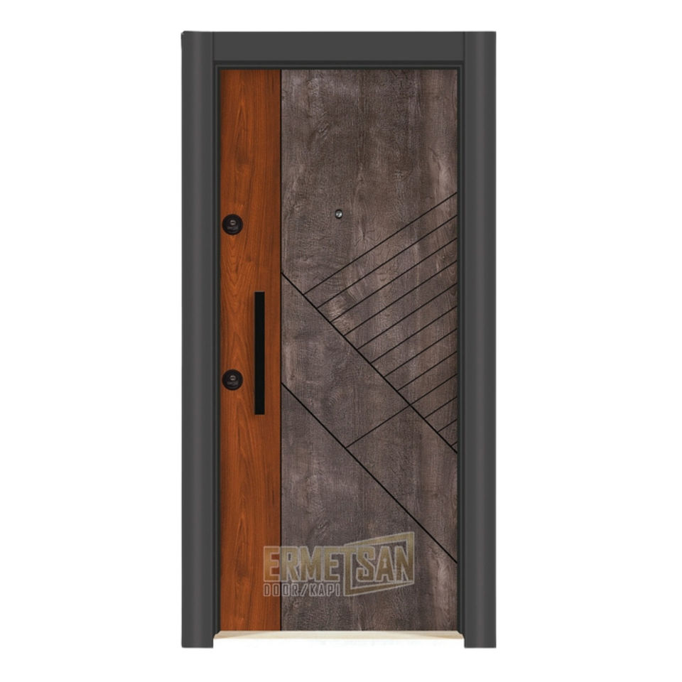 ประตูเหล็กแข็งแรงทนทาน เปิดแบบแมนนวล กันน้ำ กันไฟ กันเสียง ดีไซน์โพสต์โมเดิร์น สำหรับใช้งานภายนอกอาคาร โรงแรม