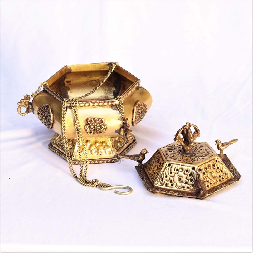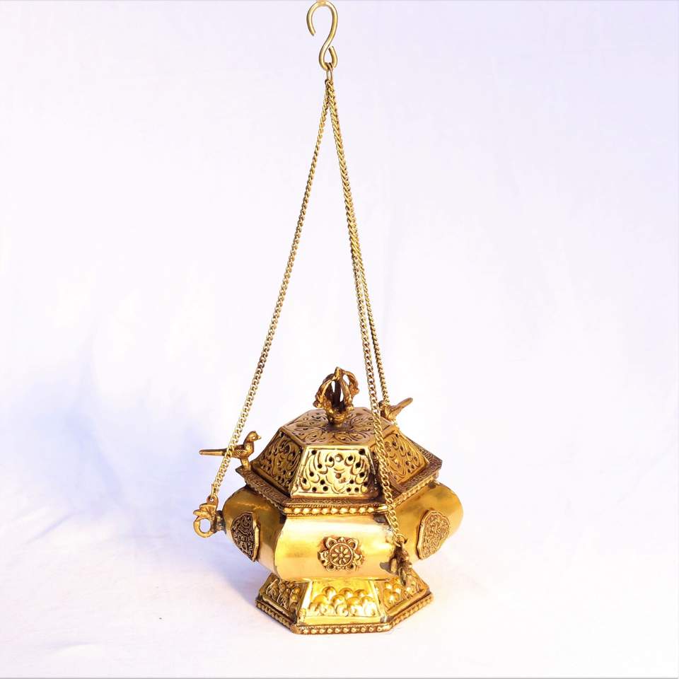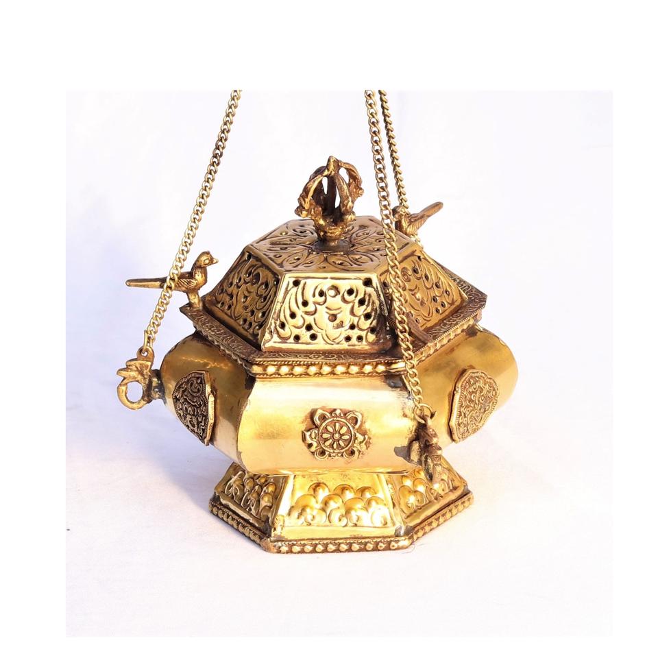 เตาเผาเครื่องหอมทองเหลือง ทนทาน สวยงาม เป็นมิตรกับสิ่งแวดล้อม พร้อมสายคล้อง สำหรับใช้ในโบสถ์ บ้าน หรือในพิธีทางศาสนาอินเดีย ขายส่ง กลิ่นมัสค์