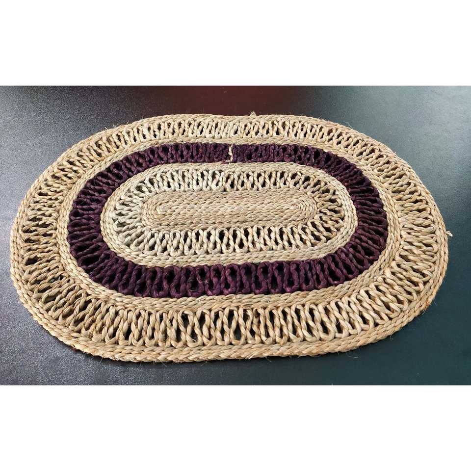 พรมเช็ดเท้าจากปอกระเจา ทนทาน สวยงาม เป็นมิตรกับสิ่งแวดล้อม โดยมุขเกรี แฮนดิคราฟต์ส ขนาด 49 ซม. x 33 ซม. x 1 ซม.