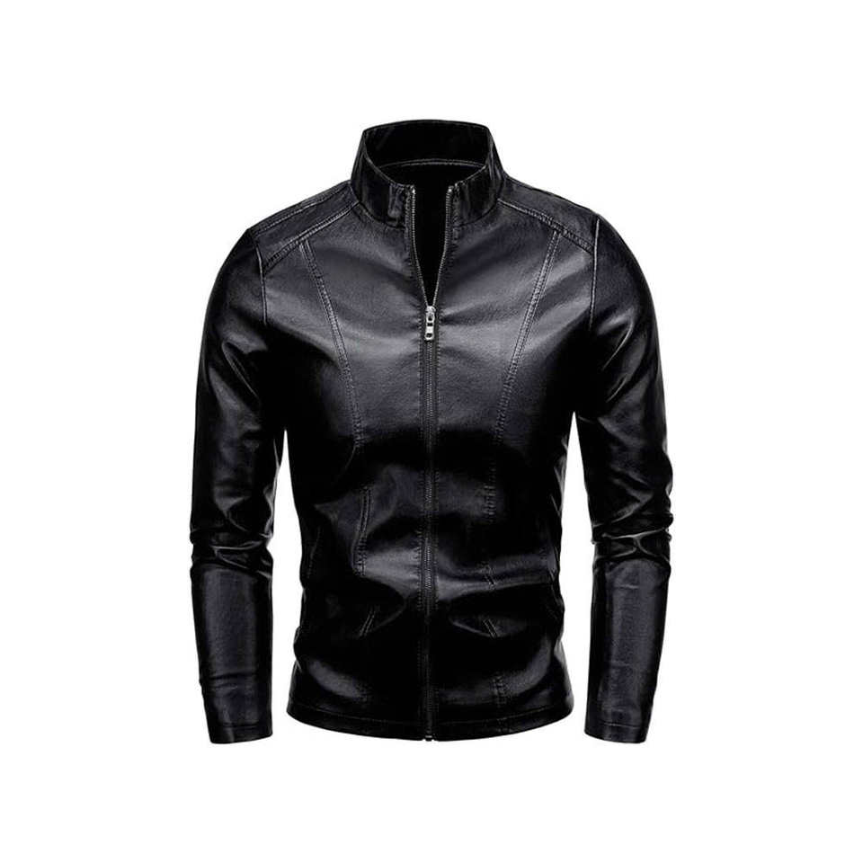 แจ็กเก็ตหนังพรีเมี่ยมของผู้ชายระบายอากาศคอตั้งสวมใส่สบายใส่สบายสำหรับฤดูหนาวโลโก้ด้านหน้า