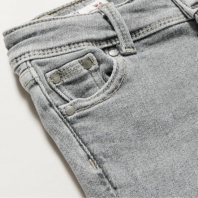กางเกงยีนส์รัดรูปผ้ายีนส์เกรย์เอวกลางแบบลำลองสไตล์เรียบง่ายทนทานซักได้ปานกลางแบบถัก