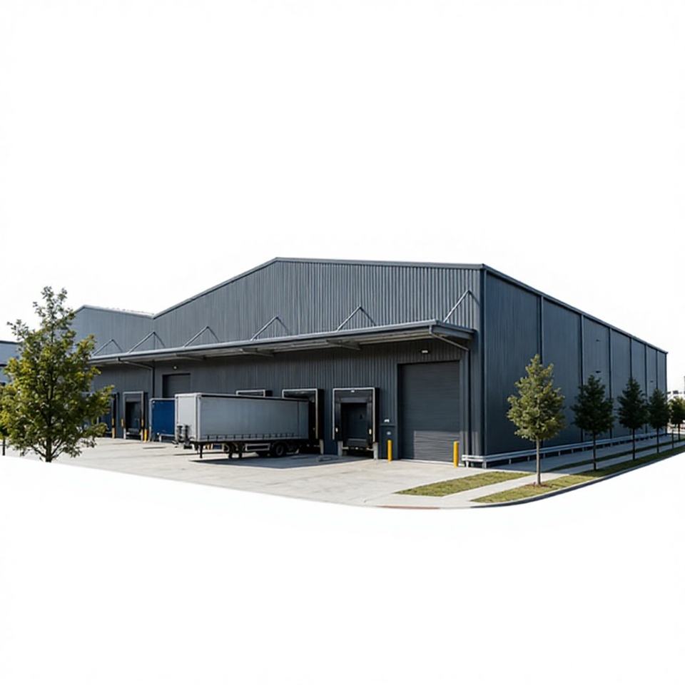 ศูนย์โลจิสติกส์โครงสร้างเหล็กที่ทันสมัย แข็งแรง ทนทาน และยั่งยืน พร้อมดีไซน์อุตสาหกรรมสำหรับใช้เป็นโกดังและโรงงาน