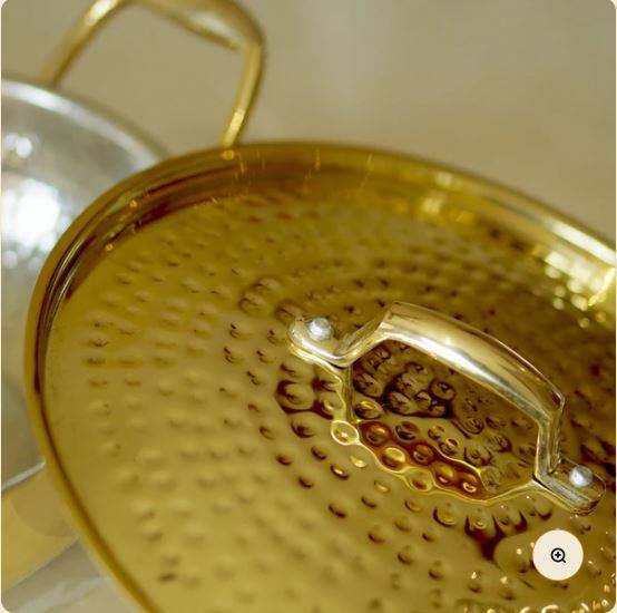 อุปกรณ์ทำอาหารอินเดียแบบดั้งเดิมที่ทนทานพร้อมฝาปิด Kadai ทำจากทองเหลือง