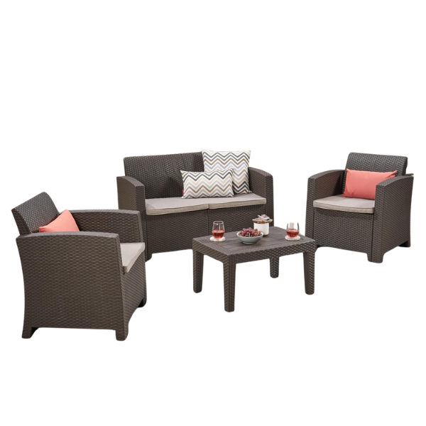 ชุดเฟอร์นิเจอร์ในสวนแบบตั้งโต๊ะหนึ่งโต๊ะเฟอร์นิเจอร์หวายแบบหนึ่งโต๊ะ4ชิ้นออกแบบได้ตามต้องการ